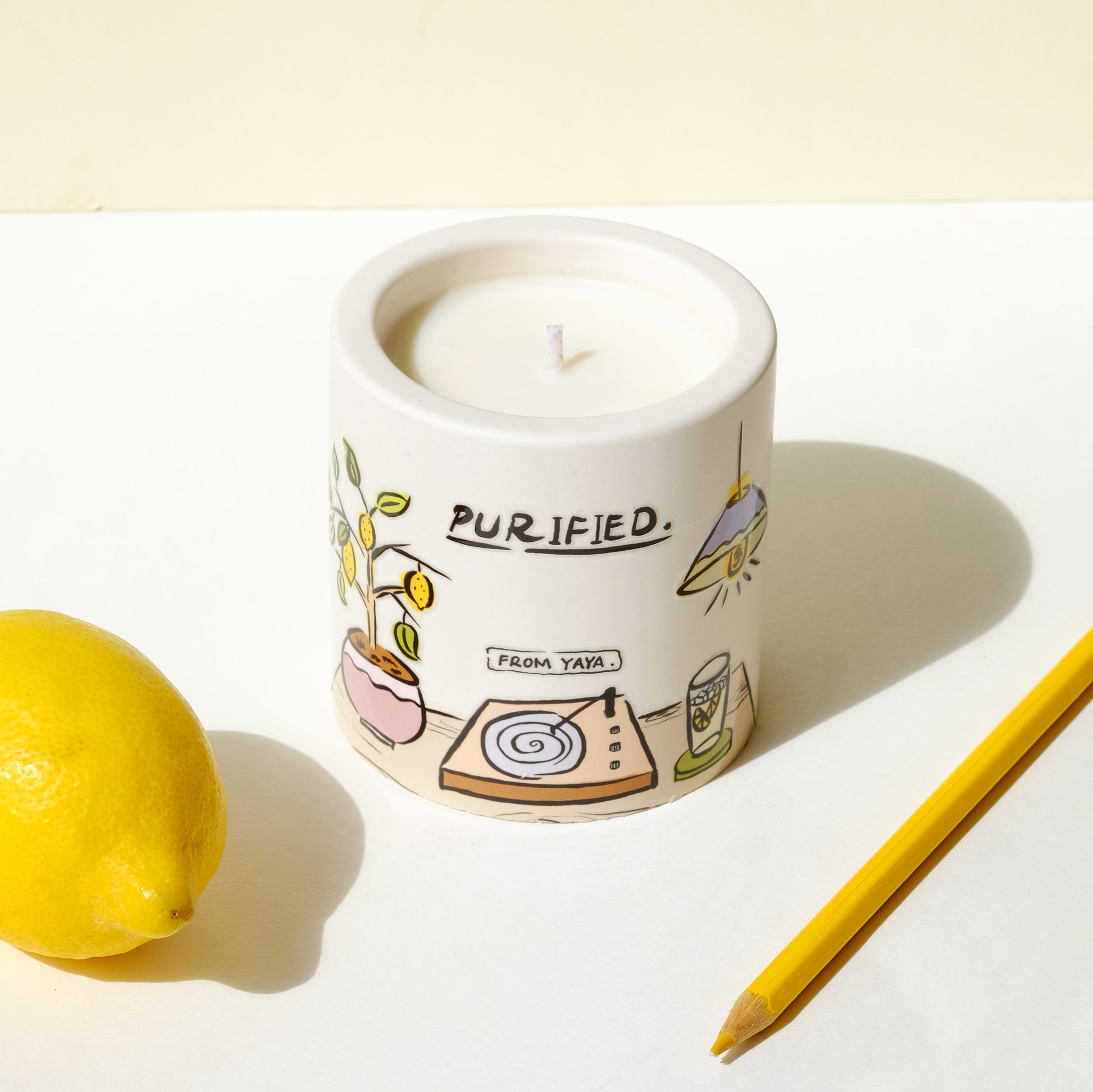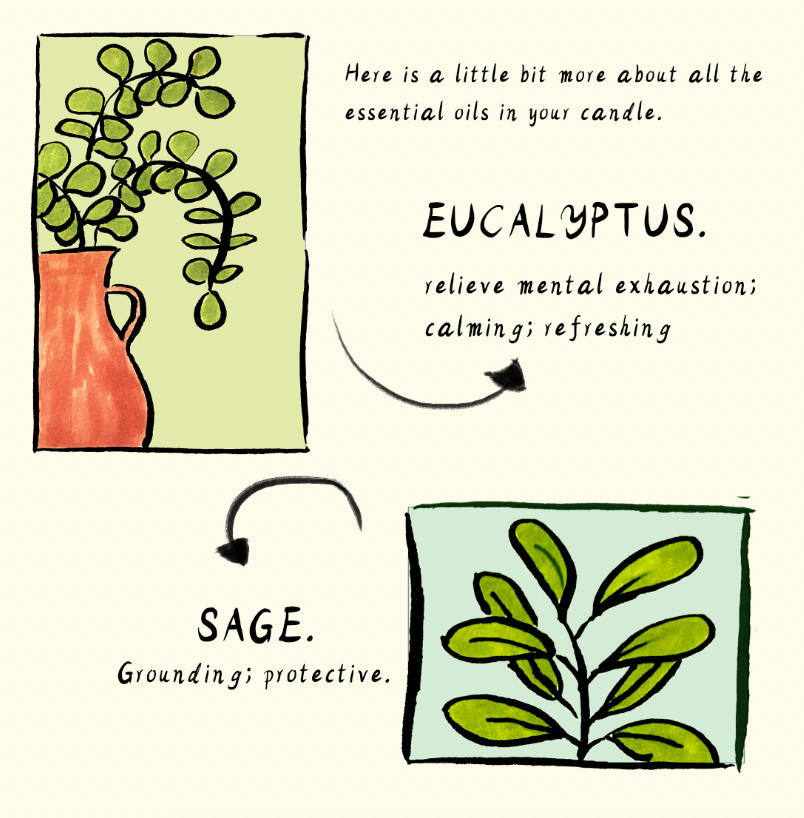 Sage Essential Oil; Lemon Essential Oil; Eucalyptus Essential Oil; Pure Soy Wax; Cotton Wick.